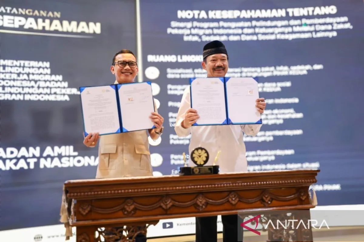 JAKARTA – Badan Amil Zakat Nasional (Baznas) RI melakukan penandatanganan Nota Kesepahaman (MoU) dengan Kementerian/Badan Pelindungan Pekerja Migran Indonesia (P2MI/BP2MI) guna melindungi pekerja migran melalui dana Zakat, Infak, Sedekah dan Dana Sosial Keagamaan Lainnya (ZIS-DSKL).