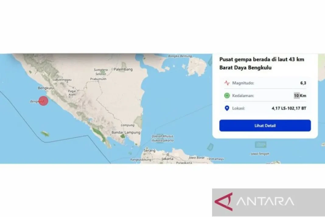 BENGKULU. DMKTv,- Wilayah barat daya, Kota Bengkulu, Provinsi Bengkulu diguncang gempa dengan magnitudo 6,3 pada Jumat dini hari, demikian catatan Badan Meteorologi Klimatologi dan Geofisika.