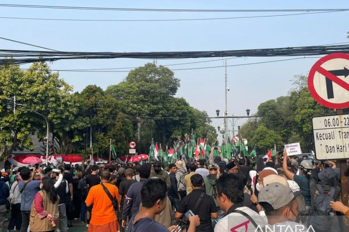 Selain itu, ratusan mahasiswa lainnya sambil menyanyikan lagu “Halo-halo Bandung” berjalan menuju lokasi yang sama.