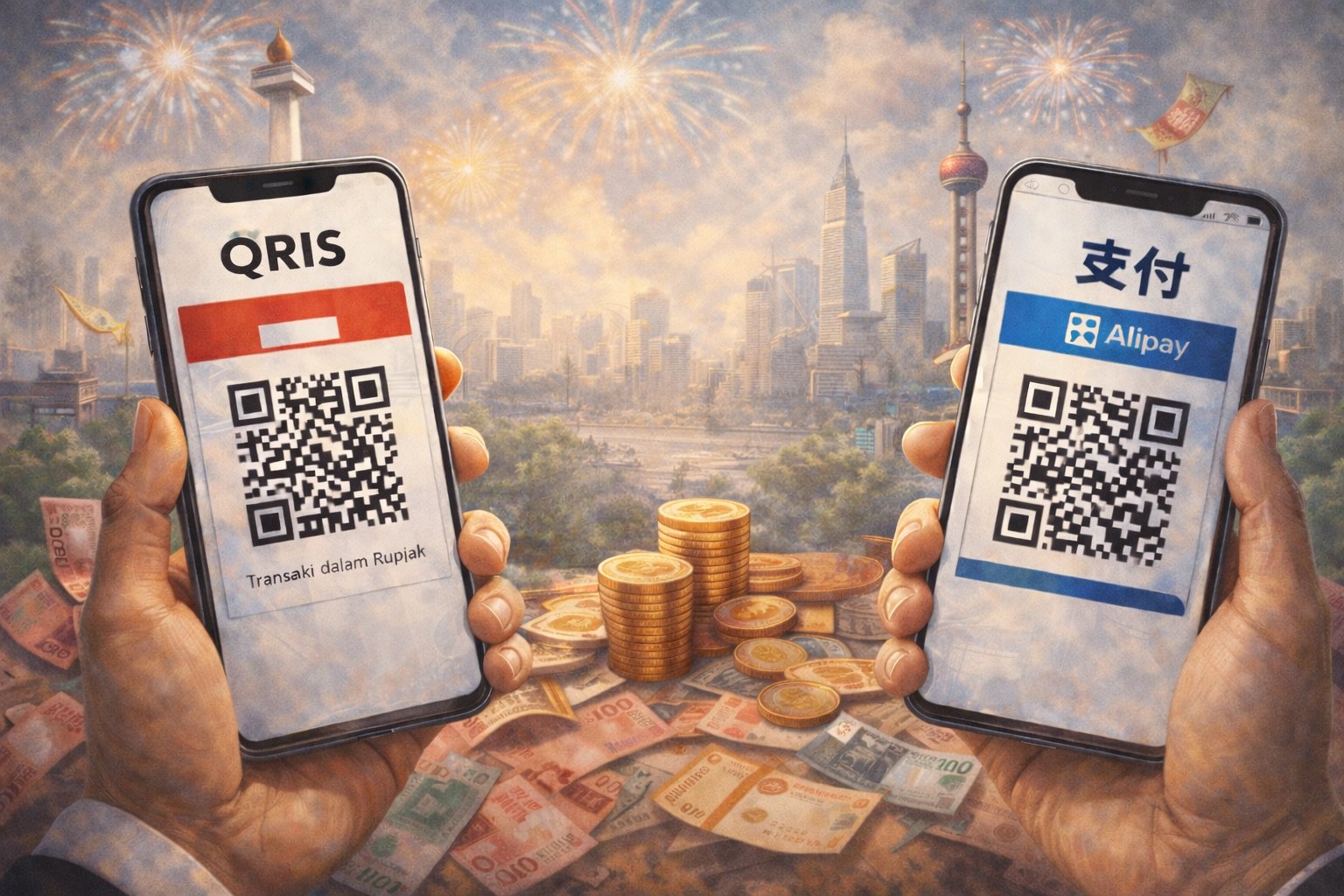 Akhirnya Indonesia bisa mendapat perlakuan adil dari Tiongkok: sudah lama Alipaynya Tiongkok bisa dipakai di Indonesia. Kini QRIS-nya Indonesia juga bisa dipakai di Tiongkok.