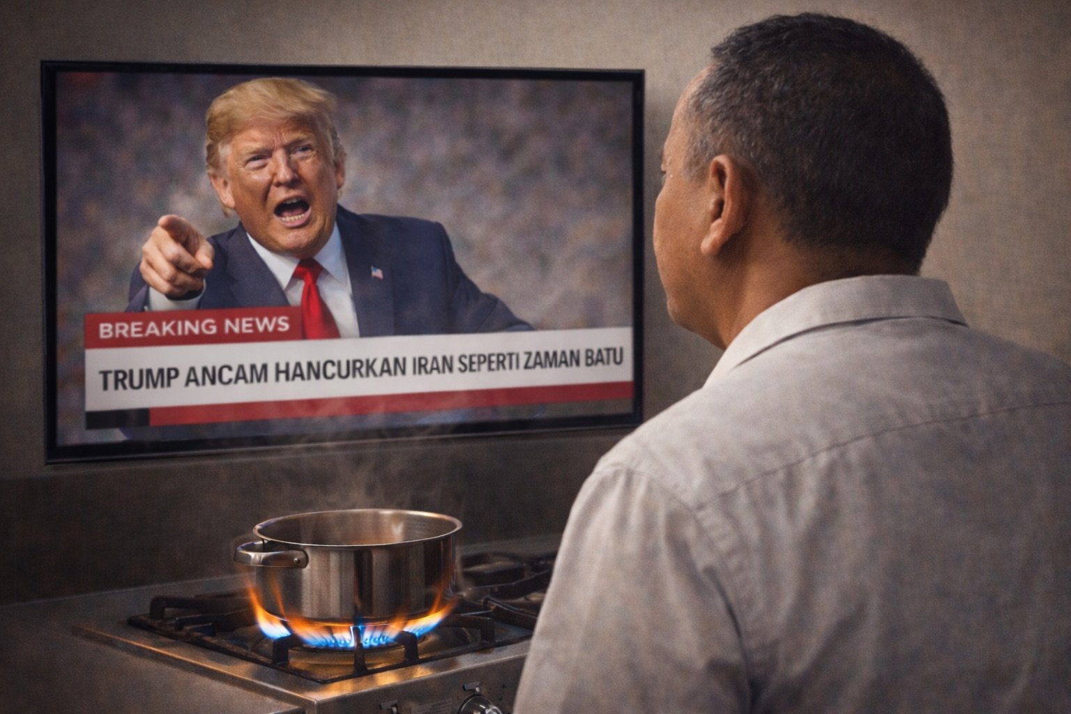 Di saat yang tepat itulah Trump memberikan ultimatum ke Iran: menyerah, membuka Selat Hormuz, atau kembali ke zaman batu.