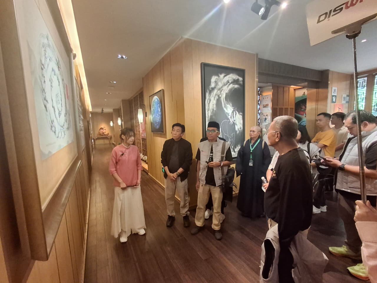 Di salah satu bangunan galerinya kami melihat lukisan yang dibuat Jack Ma. Mirip angin puting beliung. Bisa juga mirip gelombang besar. Tapi dari jauh bisa juga dianggap mirip huruf a kecil yang lagi tersenyum. Itulah lukisan “@” yang sudah diubah menjadi bentuk karya seni.