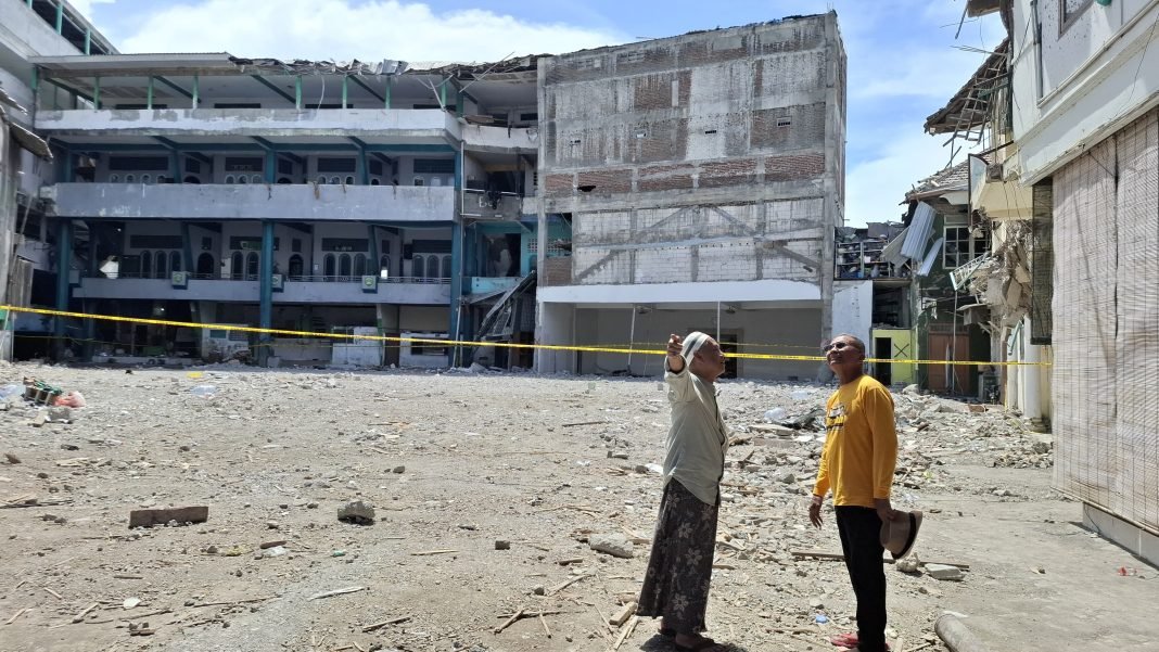 Saya bisa membayangkan alangkah sulitnya tim evakuasi melaksanakan tugasnya hari itu. Bangunan yang roboh itu dijepit bangunan-bangunan lain. Di baratnya ada “bangunan enam baris” yang tidak roboh. Bagian selatannya bangunan-bangunan empat lantai. Timur dan utaranya rumah-rumah tinggal enam bersaudara kiai di situ.