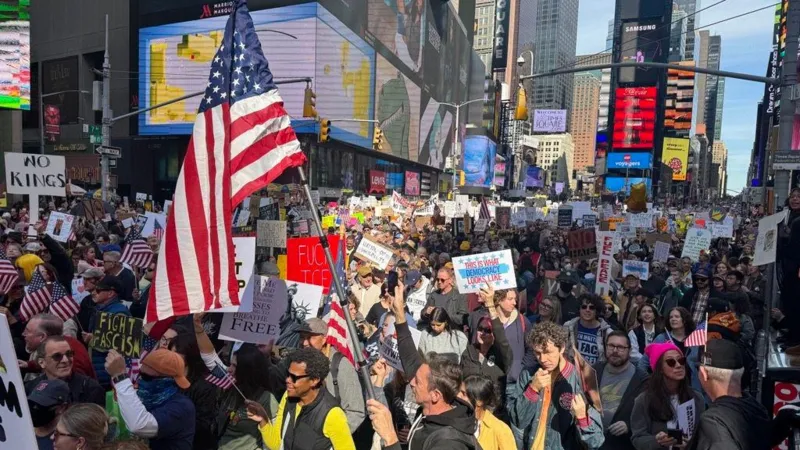 Para pengunjuk rasa membawa anak-anak dan hewan peliharaan, turun ke jalan secara massal. Aksi unjuk rasa bertajuk “No Kings” berlangsung di seluruh kota di Amerika Serikat pada hari Sabtu. Mereka mengecam apa yang mereka anggap sebagai kecenderungan otoriter dan korupsi tak terkendali dari Presiden AS Donald Trump.