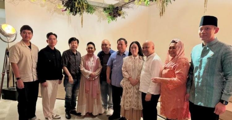 Dalam salah satu foto, tampak Prabowo, Mbak Titiek dan Didit berada di tengah, berfoto bersama dengan para tamu. Prabowo terlihat santai mengenakan kemeja lengan pendek berwarna biru. Sementara sang ibunda, Mbak Titiek, tampil anggun dalam balutan busana muslim.