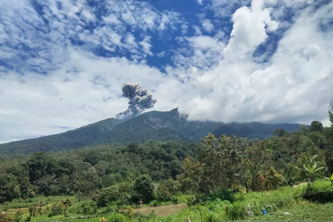 PADANG. DMKTv,- Pos Gunung Api (PGA) Gunung Marapi melaporkan erupsi Gunung Marapi yang berada di Kabupaten Agam dan Kabupaten Tanah Datar, Provinsi Sumatera Barat melontarkan abu vulkanik setinggi 800 meter di atas puncak gunung api tersebut.