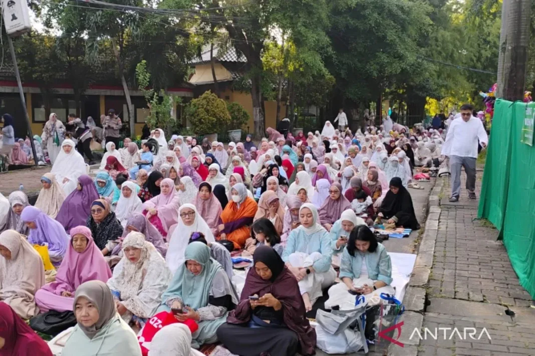 Sejak pagi hari, jamaah sudah berdatangan dan memenuhi area dalam masjid hingga halaman. Bahkan, karena kapasitas yang tidak mencukupi, saf salat terpaksa diperluas hingga ke trotoar dan sebagian badan jalan di sekitar lokasi.