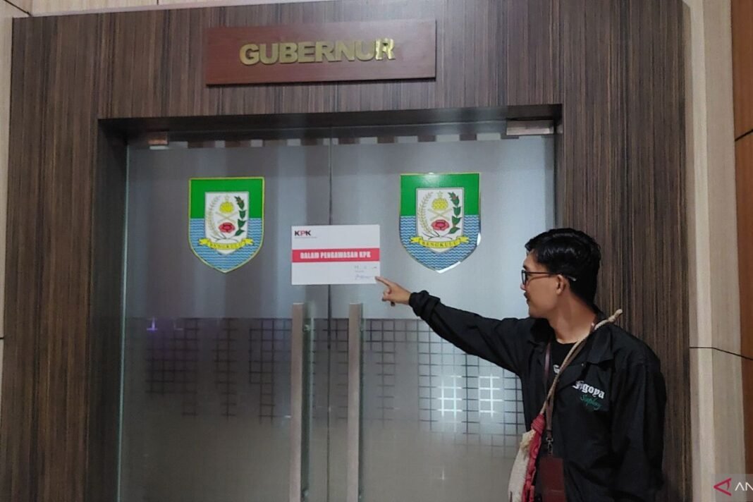 BENGKULU – Komisi Pemberantasan Korupsi (KPK) menyegel ruang kerja gubernur dan sekretaris daerah (sekda) di Kantor Gubernuran Bengkulu.