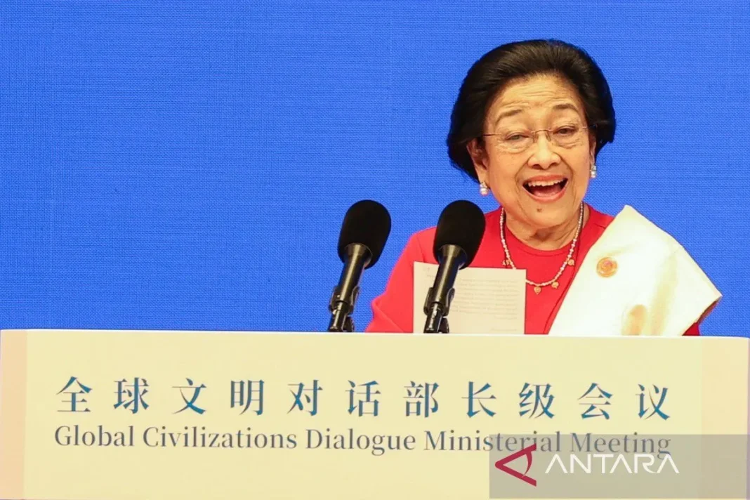 “Namun, dengan segala keberhasilan yang telah kita capai sebagai bangsa-bangsa merdeka, izinkan saya untuk menyampaikan satu kejujuran, semangat Dasa Sila Bandung belum sepenuhnya selesai,” kata Megawati dalam pidatonya pada forum Dialog Peradaban Global yang digelar di Wisma Tamu Negara Diaoyutai, Beijing, China, Kamis.