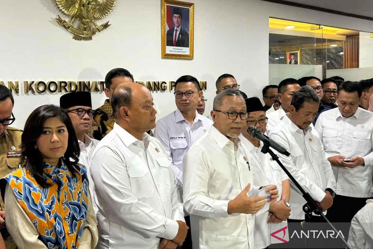 “Tadi kita sepakat akan dirumuskan nanti bareng-bareng apakah dalam bentuk Inpres atau Perpres, sehingga semua pihak bisa melakukan tugasnya sesuai yang sudah diatur oleh aturan ini,” kata Zulhas dalam jumpa pers di Jakarta, Senin.