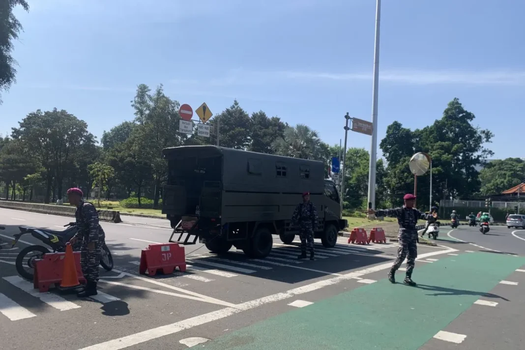 Penyekatan tersebut dilakukan terkait aksi unjuk rasa yang masih terjadi pada Jumat pagi di depan Mako Brimob.