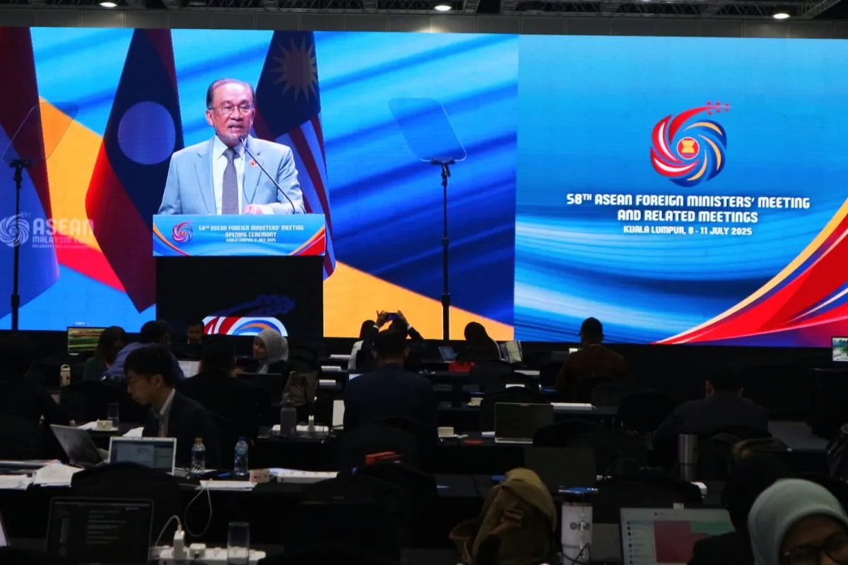 “Mari jadikan pertemuan ini untuk menegaskan kembali keyakinan kita bahwa ASEAN akan tetap koheren, tangguh dan dihormati. Dengan ini saya nyatakan Pertemuan Menteri-Menteri Luar Negeri ASEAN ke-58 secara resmi dibuka,” kata PM Anwar.