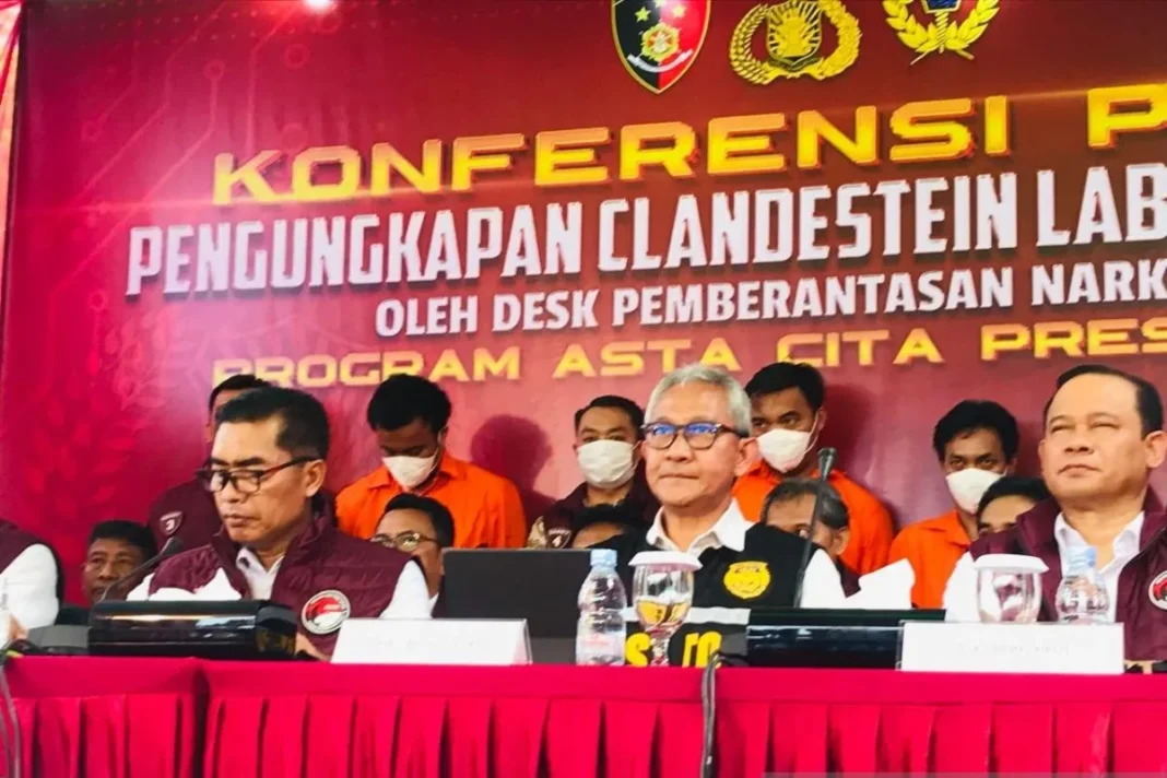 BADUNG, BALI – Direktorat Tindak Pidana Narkoba (Ditipidnarkoba) Bareskrim Polri menyatakan clendestine laboratory yang digrebek Senin (18/11) di Badung, Bali menghasilkan uang sekitar Rp1,5 triliun dalam waktu dua bulan dari pembuatan narkotika hasis dan happy five.