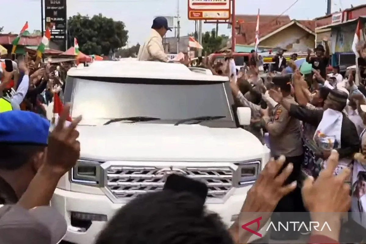 Mereka menyambut dengan suka cita seraya menyorotkan kamera ponselnya ke arah Presiden Prabowo yang muncul dari balik atap kendaraan yang ditumpanginya, sebagian di antaranya saling berebut bersalaman.