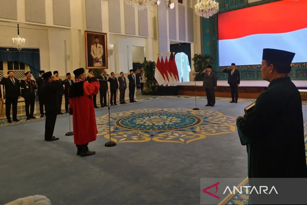 JAKARTA. DMKtv,- Presiden Prabowo Subianto menyaksikan pengucapan sumpah Adies Kadir sebagai Hakim Mahkamah Konstitusi (MK) di Istana Negara, Jakarta, Kamis.