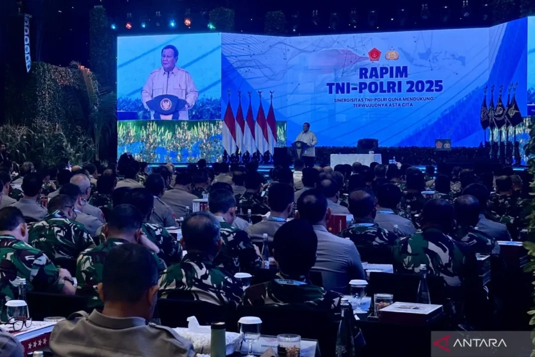 JAKARTA – Presiden Prabowo Subianto memberi sejumlah arahan kepada 600 lebih perwira tinggi TNI dan Polri dalam Rapat Pimpinan (Rapim) TNI-Polri Tahun 2025 di Jakarta, Kamis sore.
