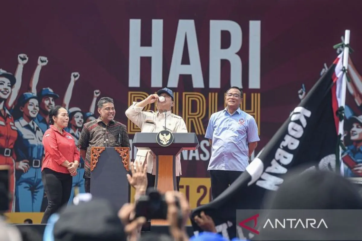 “Gue lahir di Betawi, gue besar di Betawi. Gue ngerti mana aset-aset yang milik rakyat, gue ngerti semua, dan gue akan tarik kembali jadi milik rakyat, saudara-saudara sekalian,” kata Prabowo saat berbicara di hadapan ratusan ribu buruh saat peringatan Hari Buruh Internasional (May Day) 2025 di Lapangan Silang Monas, Jakarta, Kamis.