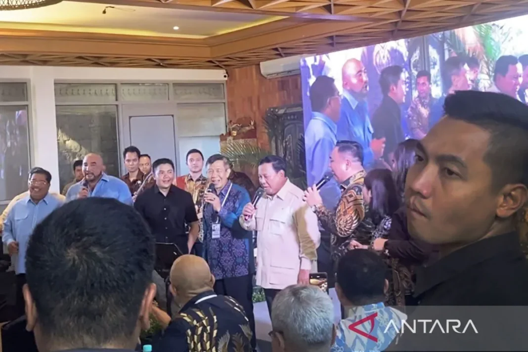 Di Bali, selain mengucap terima kasih atas kemenangannya pada Pemilu 2024, Prabowo Subianto menyempatkan makan siang bersama tokoh-tokoh politik lokal.
