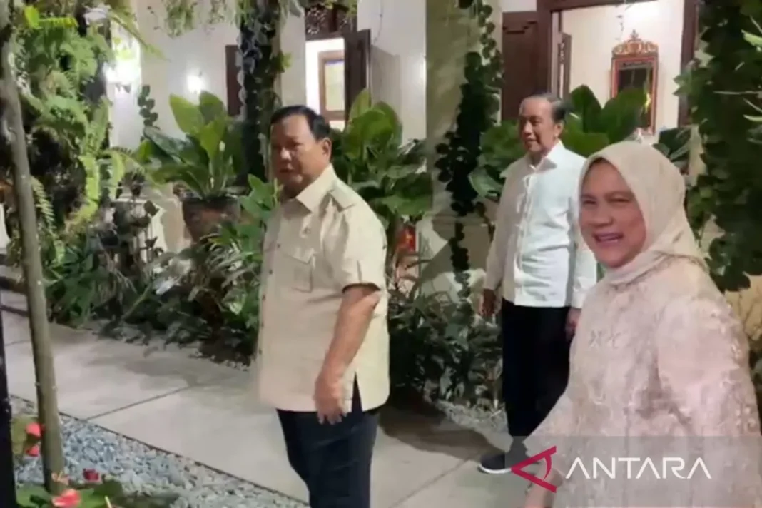SURAKARTA. DMKTv,- Presiden Prabowo Subianto bersilaturahmi dengan menyambangi kediaman Presiden Ke-7 RI Joko Widodo (Jokowi) di Gang Kutai Utara Nomor 1, Kelurahan Sumber, Surakarta, Jawa Tengah pada Minggu petang.