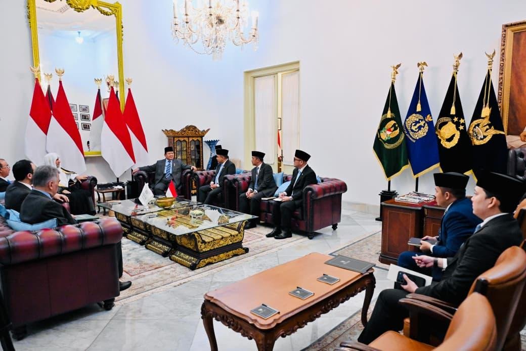 Dalam pertemuan tersebut, Presiden Prabowo turut didampingi oleh Ketua MPR RI Ahmad Muzani serta Wakil Menteri Haji dan Umrah Dahnil Anzar Simanjuntak.