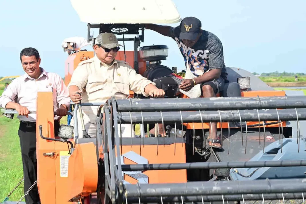 JAKARTA – Presiden Prabowo Subianto meninjau lahan percontohan (demonstration plot/demplot) di Desa Wanam, Kabupaten Merauke, Provinsi Papua Selatan, Minggu, sebagai bagian dari area pertanian skala besar demi mewujudkan lumbung pangan.