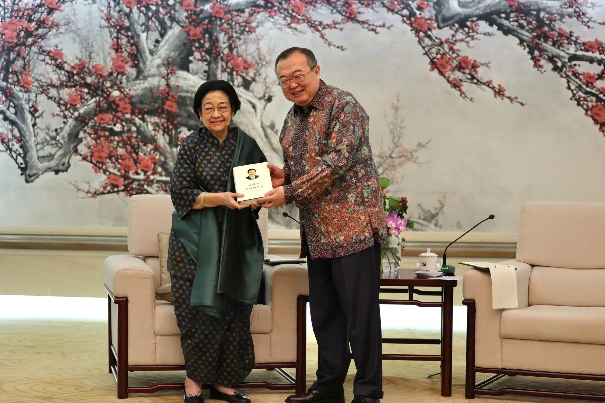 BEIJING, CHINA. DMKTv,- Presiden Kelima RI Megawati Soekarnoputri menerima sebuah buku dari Presiden Republik Rakyat China Xi Jinping melalui Menteri Departemen Hubungan Internasional Komite Sentral Partai Komunis China (IDCPC), Liu Jianchao di kantor IDCPC, Beijing, Rabu.