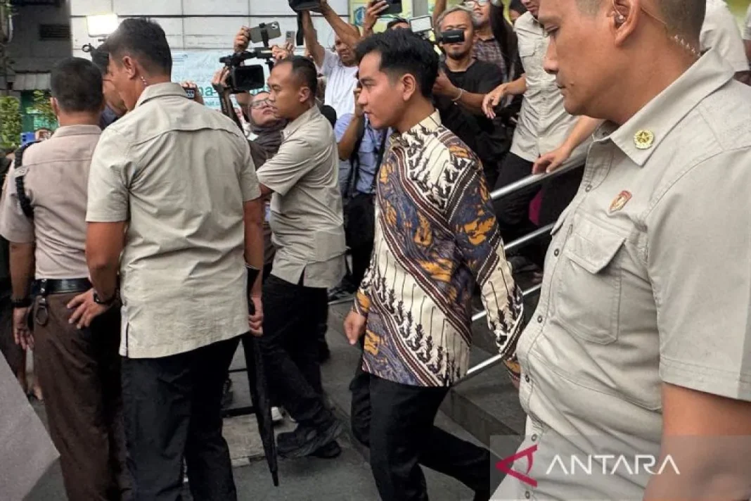 Gibran tampak mengenakan pakaian batik dengan setelan celana berwarna gelap dikelilingi sejumlah personel Paspampres. Tak lama kemudian, ia keluar dari ruang perawatan didampingi Kepala BGN Dadan Hindayana.