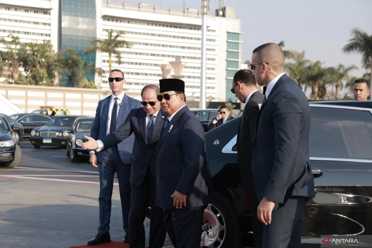 Sekretariat Presiden dalam siaran resminya, Minggu WIB, menyebutkan Presiden El Sisi dan Presiden Prabowo kembali menaiki kendaraan yang sama menuju Bandar Udara Internasional Kairo.