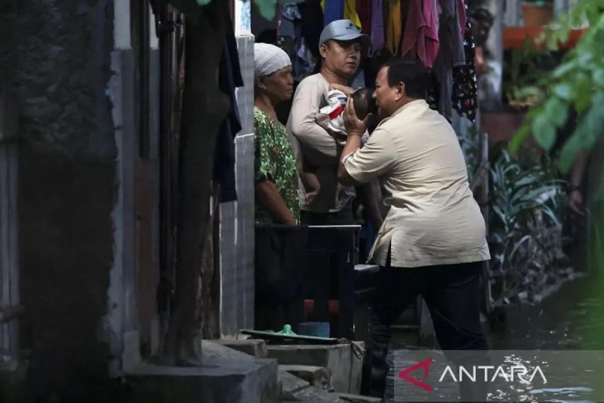 Presiden, yang didampingi oleh Sekretaris Kabinet Teddy Indra Wijaya, mengecek langsung kondisi mereka, Sabtu, dengan mendatangi rumah-rumah warga yang terendam banjir, dan duduk di teras rumah salah satu warga untuk mendengarkan keluhan mereka.