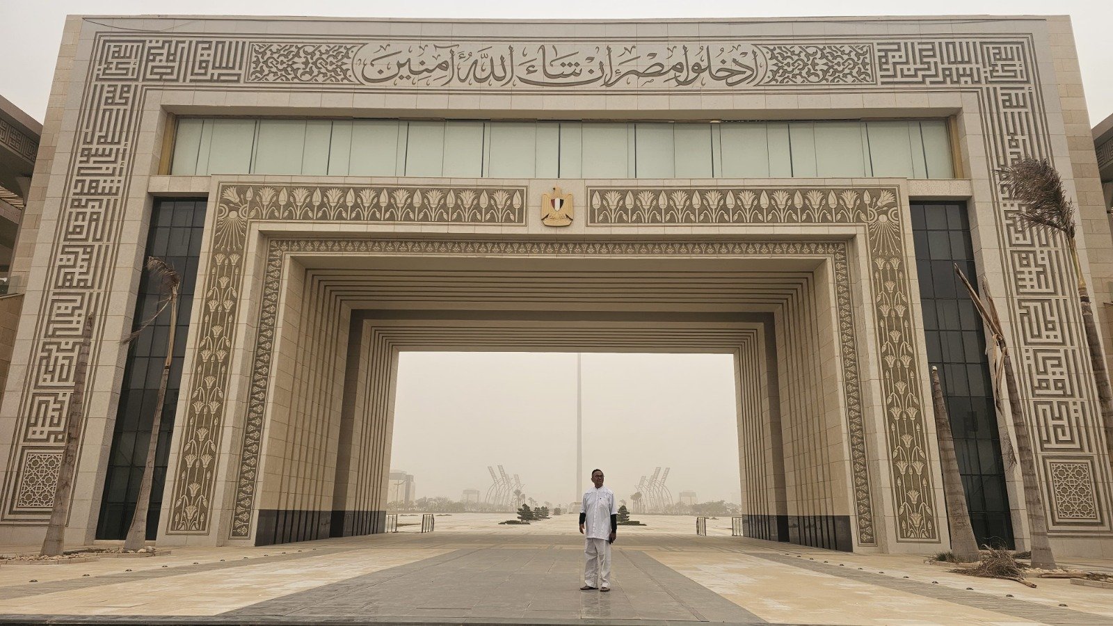 Saya memelototi IKN Mesir ini di balik bayang-bayang debu. Gerbang istana presidennya sendiri dibuat seperti kerajaan Mesir kuno di Luxor –750 km di hulu sungai Nil. Tapi bangunan istananya jauh di dalam sana. Tidak kelihatan. Belum sepenuhnya jadi.