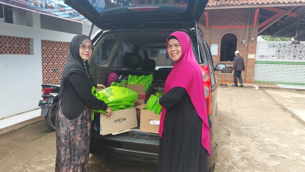 BOGOR. DMKTv,- Kemarin, Direktur Marketing DMK Communucations Riana Suryawati menyerahkan bingkisan kepada 60 santri yatim duafa dari pondok pesantren Al Hamdaniyah dan Nurus Sodiqin, Bogor. Plus bingkisan untuk para pengajar di pondok itu, totalnya 74 bingkisan.