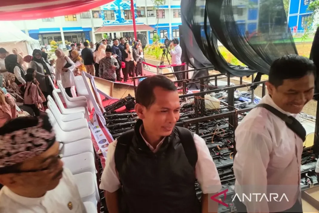 KABUPATEN BANDUNG – Layar besar (big screen) yang dipasang saat peresmian apartemen transit Rancaekek, Kabupaten Bandung, ambruk menjelang sambutan Menteri Koordinator Infrastruktur dan Pembangunan Kewilayahan Agus Harimurti Yudhoyono (AHY).