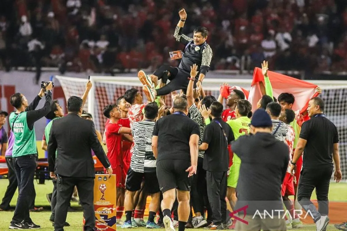 “Pertama, saya mengucapkan puji dan syukur kepada Allah SWT karena tahun kemarin ada medali emas SEA Games 2023, tahun ini 2024, ada Piala AFF U-19. Dan tentu untuk saya, itu menjadi motivasi agar berbuat yang lebih baik lagi,” kata Indra pada sesi jumpa pers setelah laga, Senin.