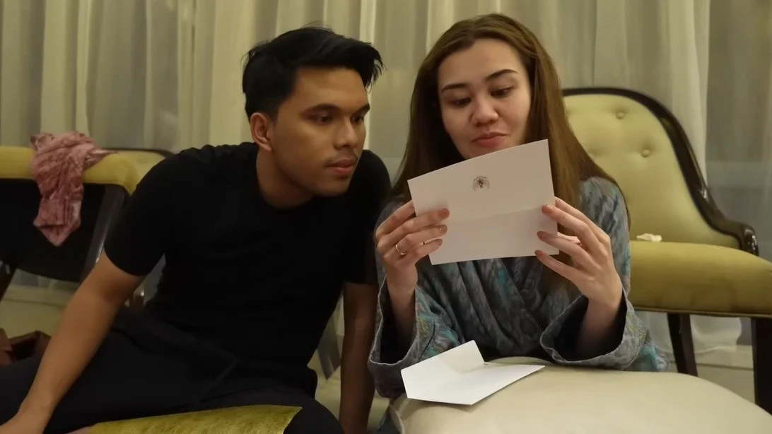 Aaliyah kemudian membaca surat ucapan itu dengan senyum bahagia. Isinya berupa doa baik untuk pernikahannya.